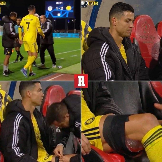 不仅如此,C罗还在第81分钟因为腿筋拉伤,黑着脸被换下场。下场后,C罗更是不得不在替补席用冰袋冷敷大腿,显然连续作战让身体素质惊人的C罗也扛不住了。