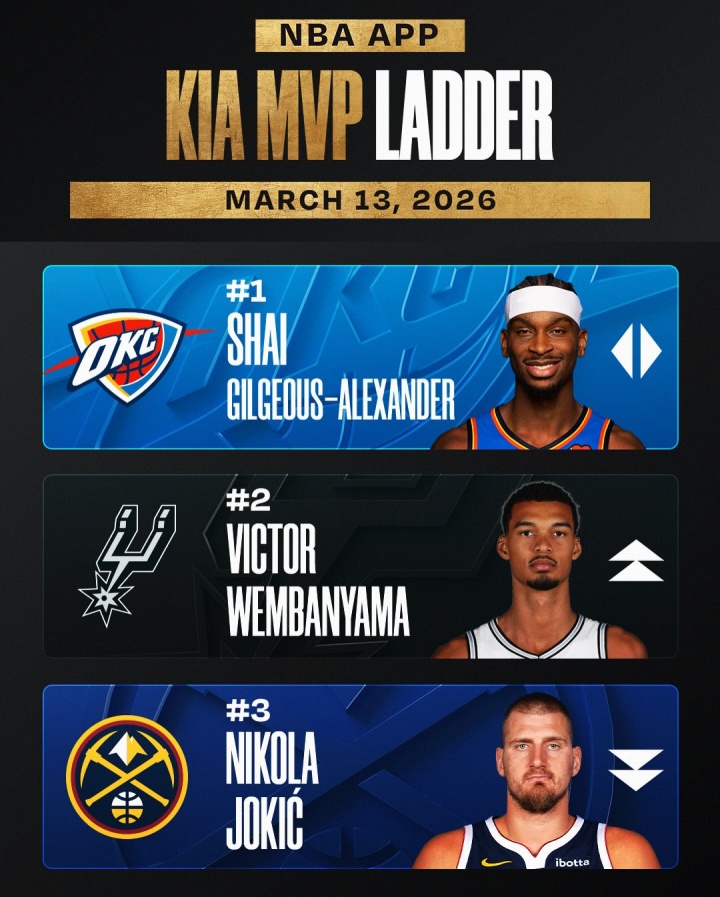 03月13日讯 NBA官方公布最新一期的常规赛MVP榜单——亚历山大持续领跑;文班亚马反超约基奇升至第二;东契奇连升两位到第四;伦纳德上榜: